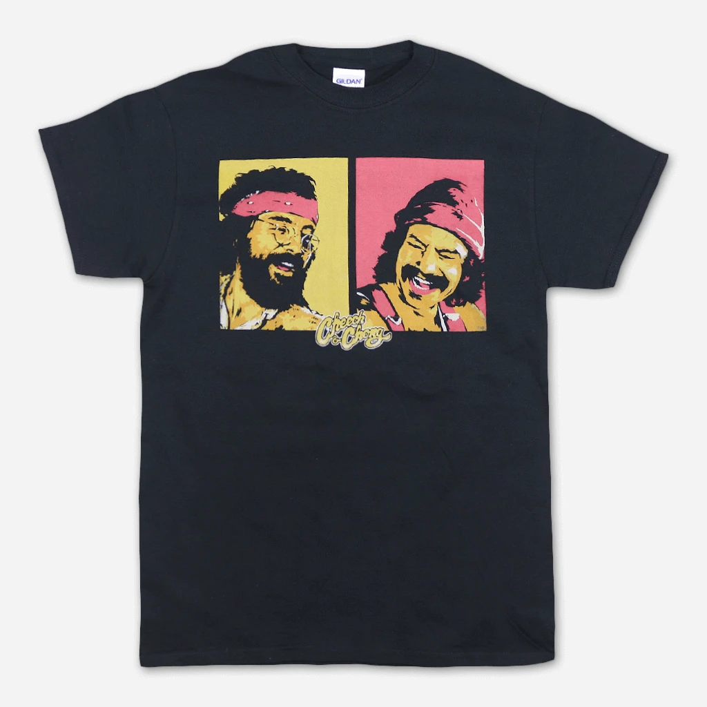 A men’s soft fitted 30/1 cotton tee featuring a Cheech & Chong graphic printed on front.